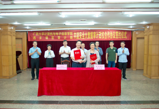 2022年5月12日,太阳成集团tyc122ccvip和南宁市西乡塘区审计局在西乡塘区政府办公楼,举行“太阳成集团tyc122ccvip与南宁市西乡塘区审计局安全大数据审计政学合作框架协议”签约仪式暨交流座谈会。