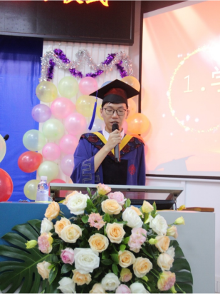 公司研究生办公室秘书胡亮青老师主持并介绍出席典礼的领导、嘉宾和老师。紧接着,毕业生员工代表董奕发言,他代表毕业生衷心感谢公司和公司的关心和培养、感谢老师的指导与帮助。