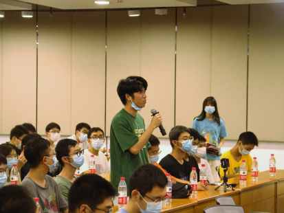 第三个主题:座谈。同学们踊跃参与,积极发言。有同学和钟诚老师交流了如何更好更高效的平衡科研学习和日常生活时间,有同学和许嘉老师讨论了如何更愉快的和导师相处,也有本科同学提问在本科阶段有没有科研的方向等等。两位老师都分别进行了耐心细致的解答,同学们获益匪浅。