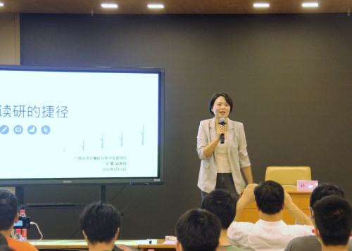 第二个交流主题“读研的捷径”由许嘉副教授主讲。首先,针对“为什么读研”的问题,许老师认为:读研可以提升独立思考能力和辨证思维能力、提升抗挫折能力、提升写作能力和表达能力。其次,许老师提到读研的“捷径”就是要尽早掌握正确的方法,同时要持续地努力,正确方法包括:常与导师沟通,多读论文,会讲论文,懂写论文。与导师沟通要用结构化思维组织语言,提高沟通的效率;多读论文:在读论文中寻找创新,形成学术想法;会讲论文:将同行发表的论文能清楚地转述给他人,同时自己加深理解;懂写论文:要能把自己的工作清晰地表达出来,以便他人理解。许老师还具体介绍了如何搜索找到自己需要的高水平的国际期刊和会议论文。对于阅读论文,许老师还特别提及要抓住五个方面:研究的动机、研究的评价指标、研究的传统方法、研究运用的主要思想、实验结果评估。阅读过后,要用批判性思维找出已有研究论文的不足。最后,许老师希望同学们要明白自己想追求的是什么;大家要有爱国心,成就越高,和祖国的联系就越紧密!