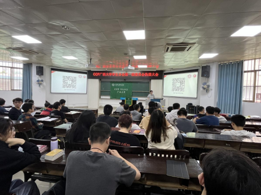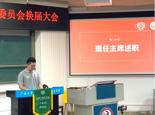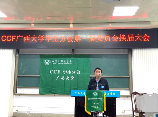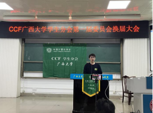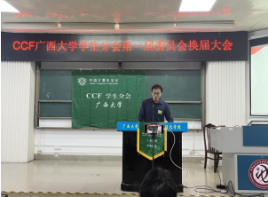 吕品老师首先致辞,他表达对现任执委工作的肯定,并鼓励分会员工会员积极利用好中国计算机学会CCF的丰富资源,不断提高专业水平。随后,分会现任主席涂欢同学就过去一年分会在学术科技服务、升学就业服务及素质技能提升三方面做工作报告。