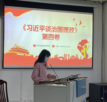 接着,谢凡翠同志代表支部第一学习小组对学习《习近平谈治国理政》第四卷第二十专题进行分享汇报。