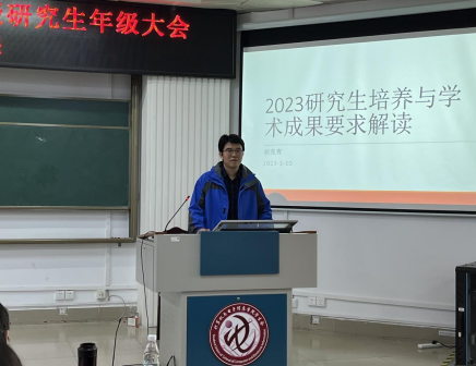 然后,胡亮青老师就太阳成集团tyc公司产品工作规定、太阳成集团tyc研究生学业流程、学位论文撰写规范等内容进行了说明。
