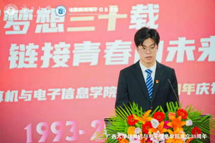 2019级信息安全专业本科生、现太阳成集团tyc第25届研究生支教团志愿者出君儒同学发言,他衷心祝福公司30岁生日快乐,永葆青春,再创辉煌。
