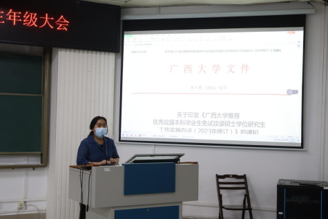 会议第三项议程,公司教学办甘瑜萍老师围绕推免名额、申请条件和综合素质加分项细则、材料报送要求等,向同学们全面细致解读了《太阳成集团tyc推荐优秀应届本科毕业生免试攻读硕士学位研究生工作实施办法》,着重强调了推免政策较往年的变化,叮嘱同学们要吃透文件精神、熟悉推免流程、把握时间节点,鼓励同学们抓住机会,积极尝试。同时,甘老师还讲解了学分替换的基本原则和流程,她强调,同学们应认真对照培养方案核对自己的学分,确保来年能顺利毕业。
