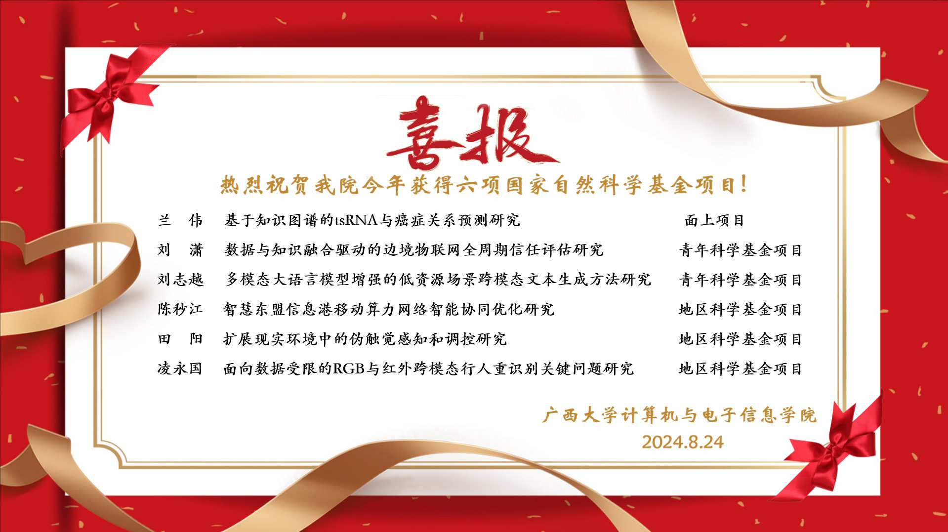 热烈祝贺公司2024年获得六项国家自然科学基金项目!