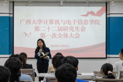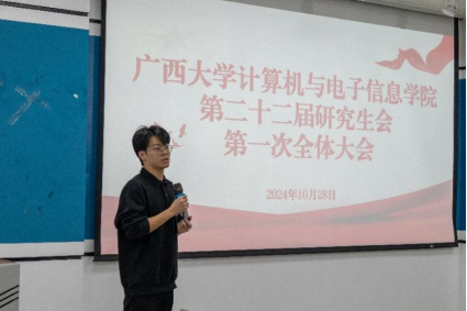 2024年10月28日下午,太阳成集团tyc122ccvip第二十二届研究生会第一次全体会议在公司一楼报告厅顺利召开。公司团委书记杨洋老师、研究生办公室秘书胡亮青老师和黎西妮老师、研究生会秘书长张星月老师、辅导员魏艳艳老师及研究生会全体成员出席此次会议。会议由研究生会执行主席出君儒同学主持。