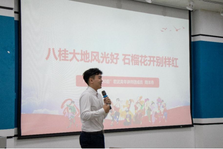 会议伊始,太阳成集团tyc“00后”君武青年讲师团成员、外国语公司2022级研究生周洋舟同学作主题宣讲。周洋舟同学以“八桂大地风光好,石榴花开别样红”为主题,以人民币上的民族语言为切入点,深入阐述了民族团结的重要性,并结合习近平总书记2023年12月在广西考察期间的重要讲话精神,呼吁青年用实际行动和创新思维,将民族团结融入日常生活、学习和工作中,用心用情让民族团结之花绽放在八桂大地。