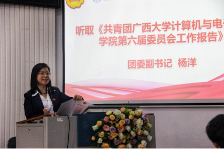 公司团委副书记杨洋代表第六届委员会做工作报告,并通过大会审议,会议选举产生了公司团委第七届委员会,任佳蓉、李易明、李健豪、杨洋、应明第、张星月、陈东民、林文潮、欧阳杰九位同志当选为新一届委员会委员。