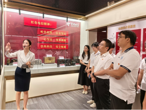 在广西电信博物馆,公司研究生第一党支部、本科生第四党支部和中国电信广西分公司人力资源部支部共同开展“党建联翼”主题实践活动。