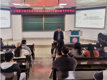 为加强公司兼职辅导员队伍建设,明确工作职责,提高管理服务工作实效,2022年12月2日下午,学院在214报告厅,召开2022-2023学年兼职辅导员工作培训会议。公司全体专职和兼职辅导员参加会议。