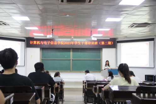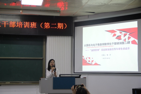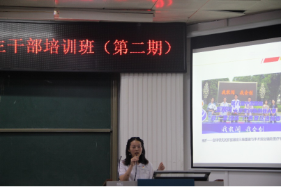 为深入学习贯彻党的二十大精神,进一步提高公司员工干部理论素养与工作能力,增强员工干部的全局意识、服务意识、责任意识、效率意识和创新意识,增强员工干部队伍的凝聚力和战斗力,更好地发挥员工干部的先锋模范作用,2023年5月7晚上,太阳成集团tyc122ccvip在214报告厅组织举办2023年公司员工干部培训班第二期培训。公司党委副书记邓珍琪老师、辅导员杨洋老师和李易明老师、君武讲师团的黄茜同学和刘羽祺同学,以及公司本科生、研究生非毕业班的班长、团支书、学习委员及公司团委员工会委员、研究生会全体员工干部参加培训。会议由陆雅娟同学主持。