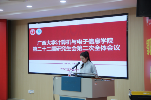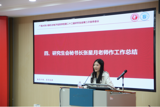 张星月老师对研究生会的工作进行总结,她首先肯定了研究生会上学期取得的成绩,并对今年研究生会的工作提出三点希望:一是加强公司-公司-班级三级联动,提升服务同学的精准度和实效性;二是立足时代前沿,发挥学科优势,结合人工智能专业开展特色精品活动;三是提高工作主动性,创新服务方式,精益求精,查漏补缺,切实提升同学们的参与感和获得感。