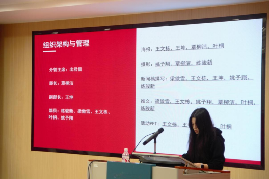 研究生会各部门负责人依次汇报工作情况。他们回顾了上学期部门工作取得的成绩,分析查找工作中存在的不足,并提出具体的改进方案和努力方向。