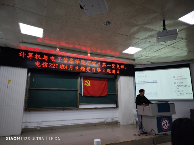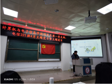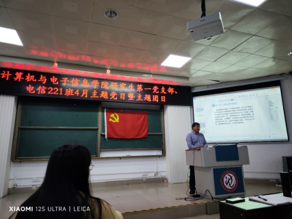 2023年4月25日,公司研究生第一党支部、电信类221班在公司214报告厅,共同组织开展2023年4月份主题党日和主题团日活动。本次活动由党支部书记邓珍琪同志主持,研究生第一党支部全体党员和电子信息类221班全体同学参加。